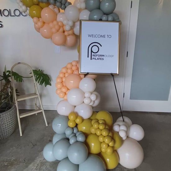 Make your welcome moment unforgettable with a custom balloon garland paired with an elegant easel and personalized signage. This setup is perfect for baby showers, birthdays, brand launches, and bridal events—styled to match your colors and theme.
